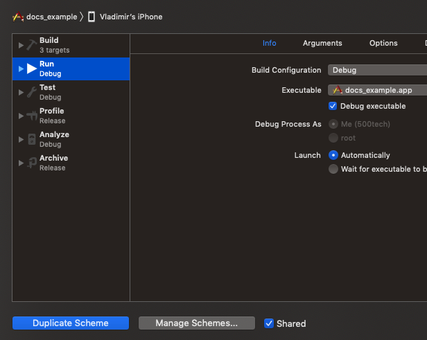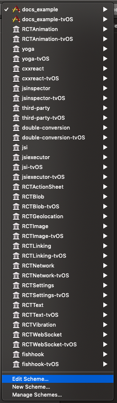 On RN project initialization, there's only 1 scheme, which is used to build apps in debug mode. We need to create another scheme, which will be used to create an app in release mode.